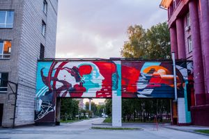Авторы граффити — Света Соловьева и Даша Серякова. Работа создана на фестивале научного стрит-арта «Графит науки» в 2019 году. По информации организаторов фестиваля, расположение граффити на переходе между корпусами выбрано не случайно. В росписи показан переход от биологической природы человека к новым технологиям и возможностям. Слева — биология, спонтанность и хаос, справа — собирательный образ медицинских технологических процессов. Сложное сочетание насыщенных контрастных цветов придаёт работе загадочность и тревожность, что соответствует посылу росписи, ведь новые технологии, по мнению авторов, всегда таят в себе некие риски и неизвестные возможности.