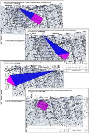 Был выполнен анализ ситуации с целью возможности размещения 25-этажного здания. В качестве размещаемого здания был принят аналог габаритами в плане 23,2м х 32,6м. Высота здания ТРЦ «Континет» принята 12,0 м от абсолютной отметки 153,84.