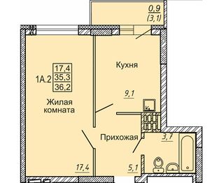 1 комн. 35,60 м² блок секция 3 в ЖК Новые Матрешки