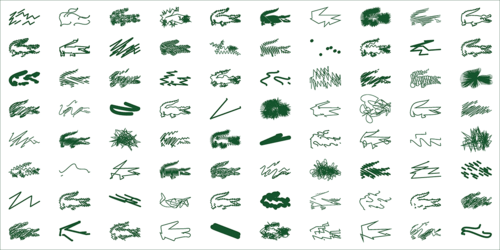 В 2013 году британский дизайнер и иллюстратор Питер Сэвилл создал для Lacoste лимитированную коллекцию футболок-поло. Взяв за основу классический белый цвет, Питер решил поэкспериментировать со знаменитым логотипом бренда. Он создал 80 различных волнистых, перечеркнутых и пр. интерпретаций символа.