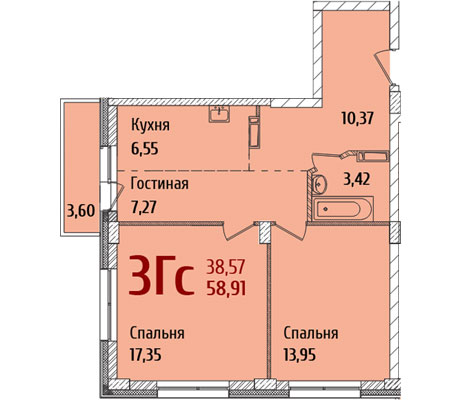 58,91 м² <br />